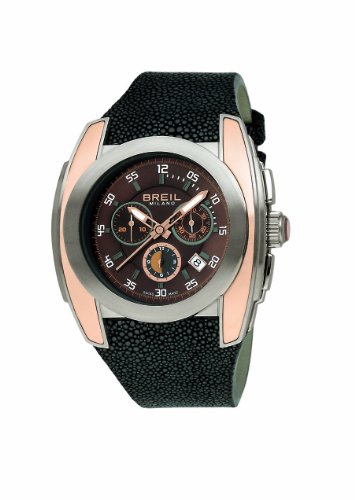 Breil Men's Mediterraneo Quartz Chronograph Watch BW0380 with Stainless Steel Case With Gold Colour Ip Inserts, Black Dial and Black Galuchat Strap